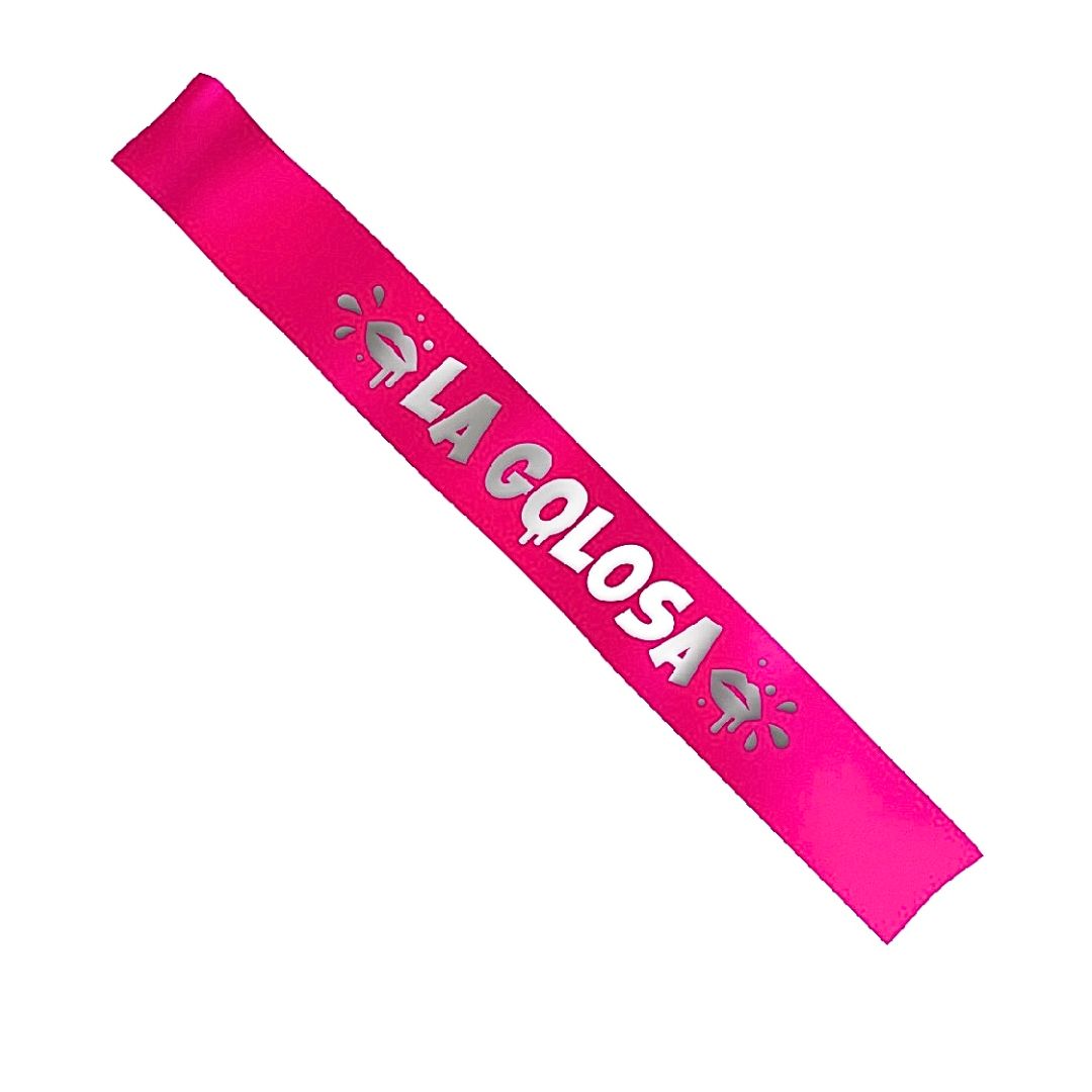 Banda La golosa en color fucsia y letras doradas