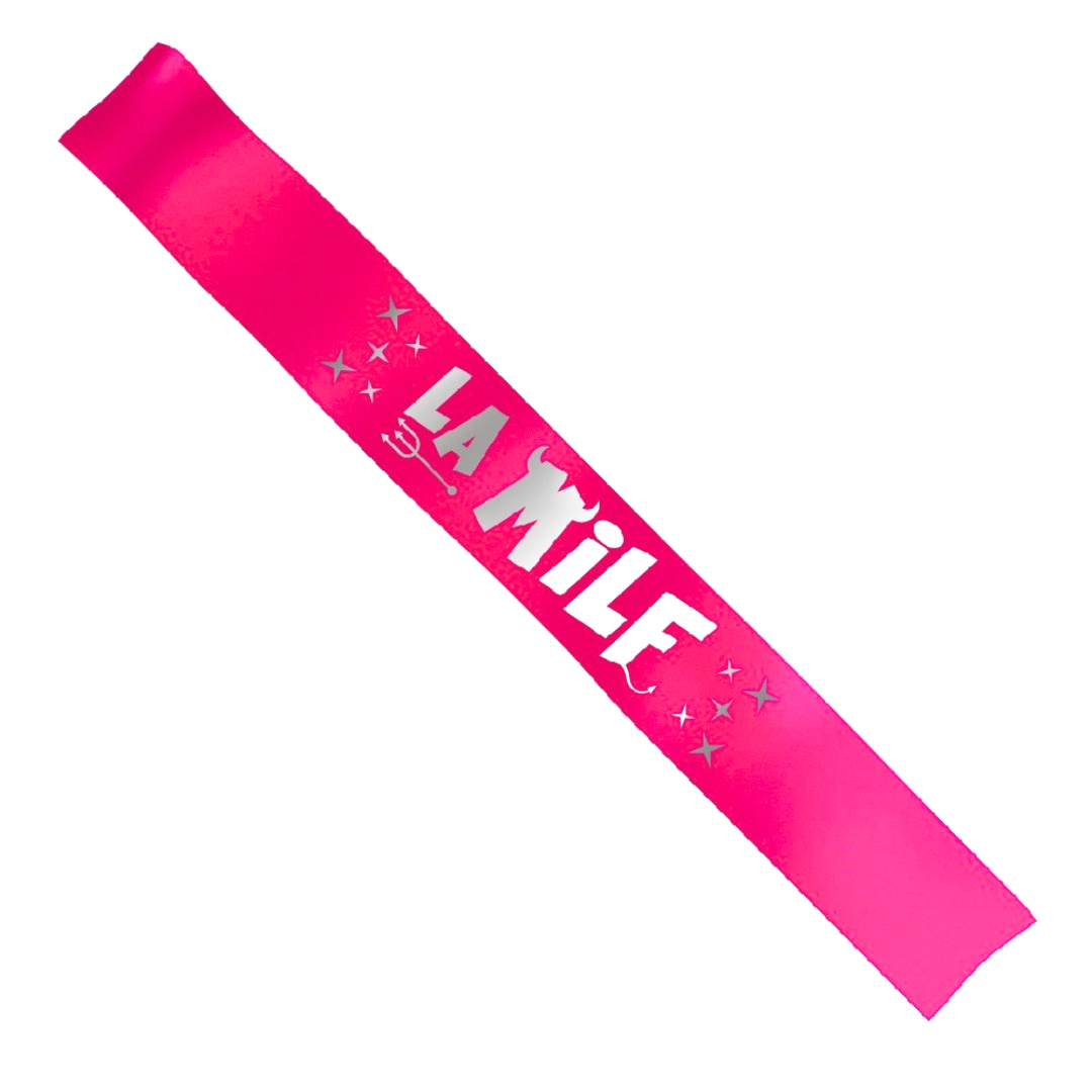 Esta banda dará que hablar en tu fiesta, es de color fucsia con letras en tono dorado.