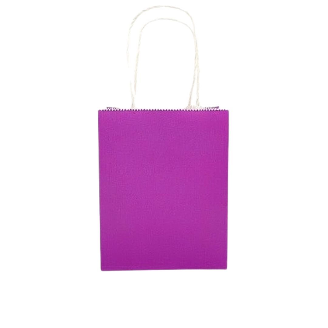 Hermosas bolsas ideales para regalo, su material es papel kraft de color morado, con una medida aproximada de 15x21x8cm