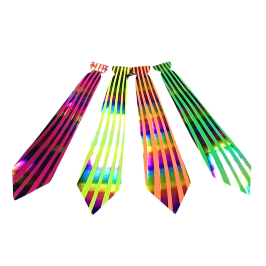 Las Corbatas Impresa Fluor x 6 unidades es un accesorio llamativo y colorido, ideal para fiestas y eventos temáticos. Fabricadas con material liviano de cartón, presentan diseños impresos en colores fluorescentes que destacan bajo la luz, aportando un toque divertido y original a cualquier celebración.