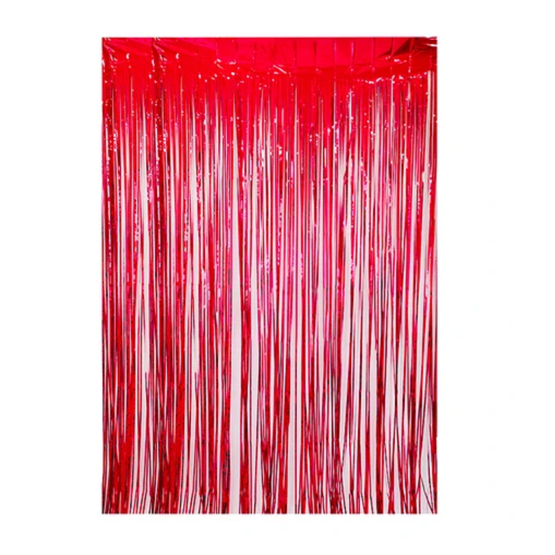 Cortina metalizada roja, con una medida aproximada de 2x1mt