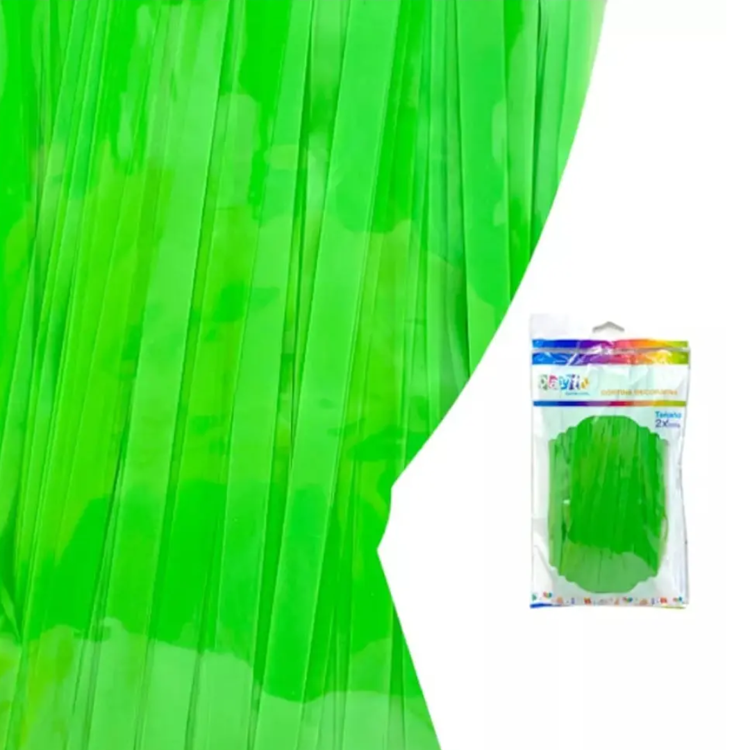 Cortina flúor verde, con una medida aproximada de 2x1mt