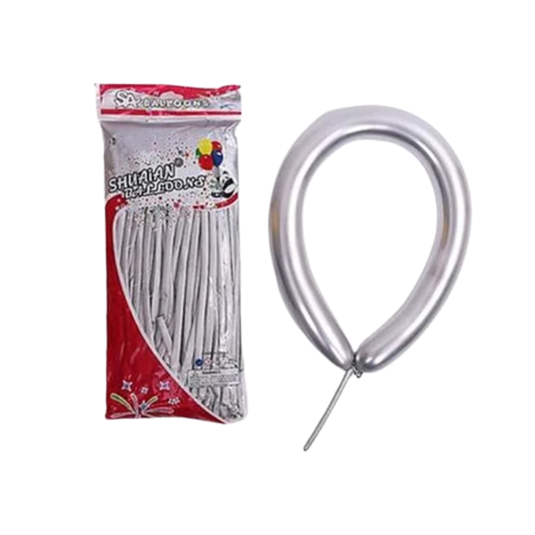 Globos largos Cromados plateado 100un