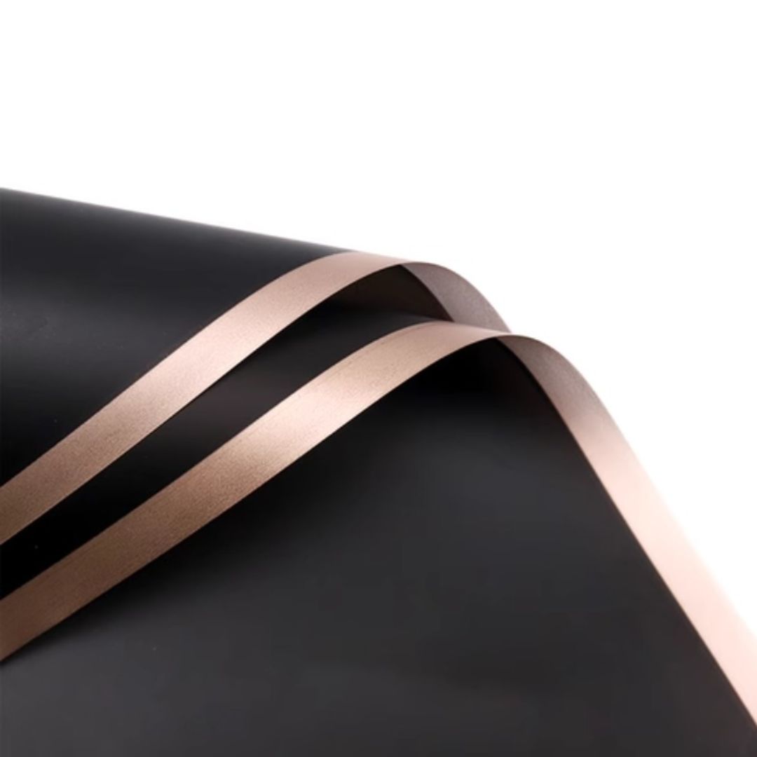 Papel coreano color negro con borde dorado, el empaque contiene 20 unidades de una medida aproximada 57x57cm