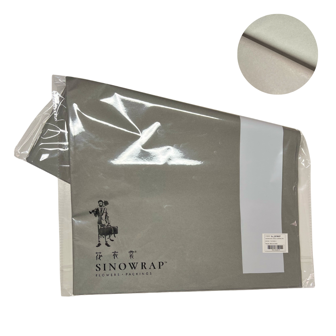 Papel eco para flores color gris, el empaque contiene aproximadamente 40 unidades
