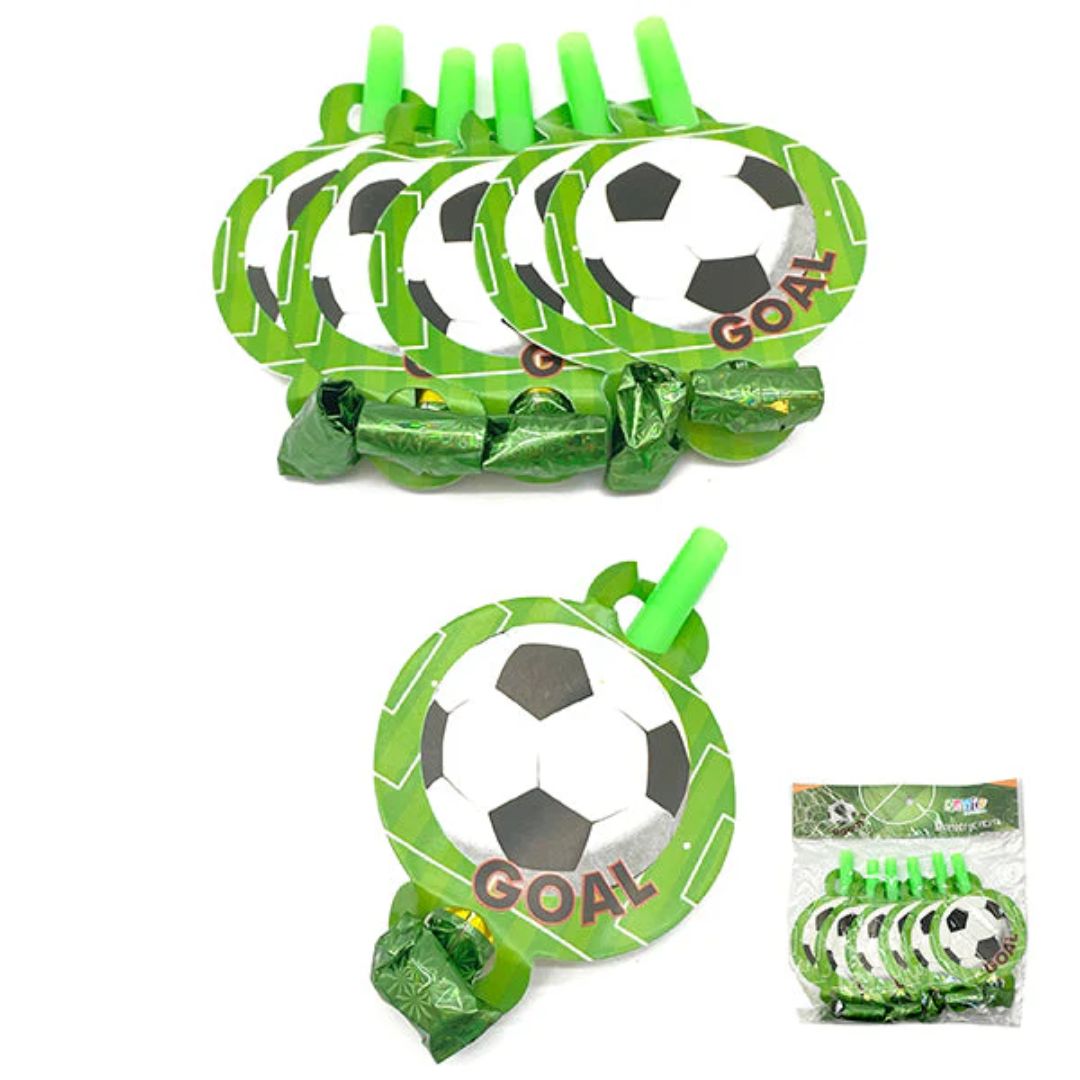 Divertidos pitos serpiente de fútbol, el empaque contiene 6unidades