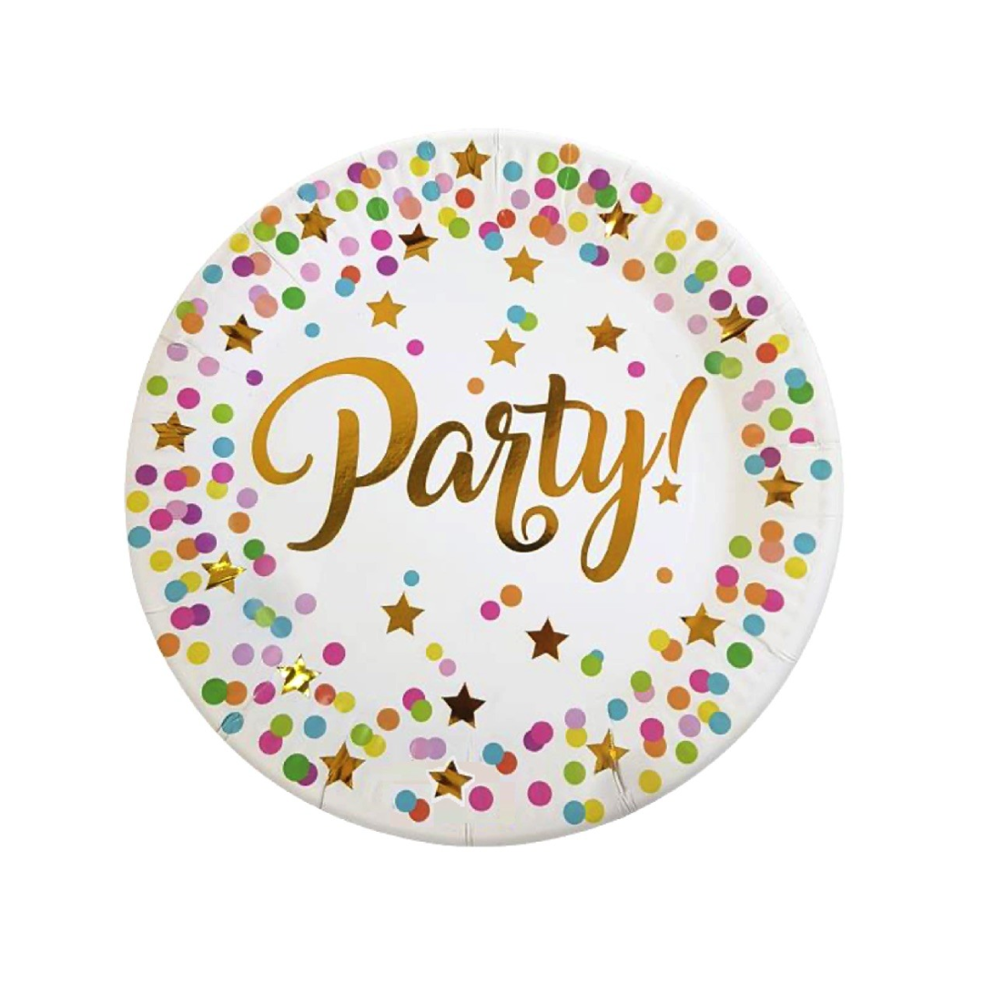 Platos golden party, tienen una medida de 18cm y el empaque contiene 6 unidades