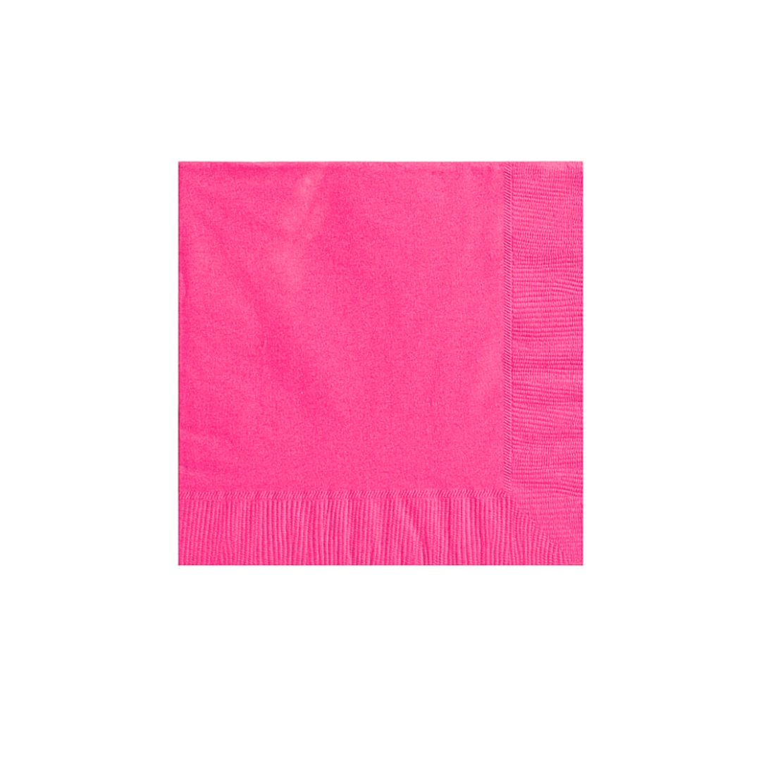 Paquete de 20 unidades de servilletas color fucsia, cada servilleta tiene una medida aproximada de 33x33cm abiertas