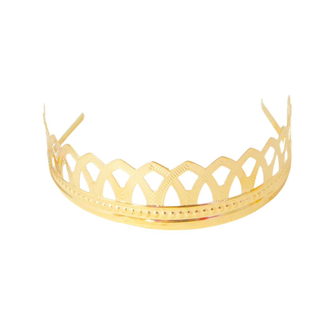 Tiara en metal dorado, elegante y sofisticada. Diseñada con delicados detalles ornamentales y un acabado brillante que realza su majestuosidad. Ideal para coronaciones, bodas, concursos de belleza o eventos especiales. Su diseño ligero y ergonómico garantiza comodidad, mientras que su estructura resistente asegura durabilidad. Un accesorio perfecto para resaltar la elegancia.