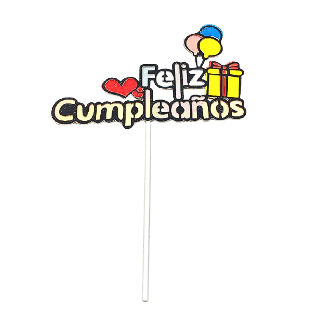 Decora tus tortas con este hermoso topper de feliz cumpleaños, su material es de cartón con una especial decoración como una caja de regalo, un corazón y globos en la parte más alta, tiene una medida de 21cm de alto y 14 cm de ancho
