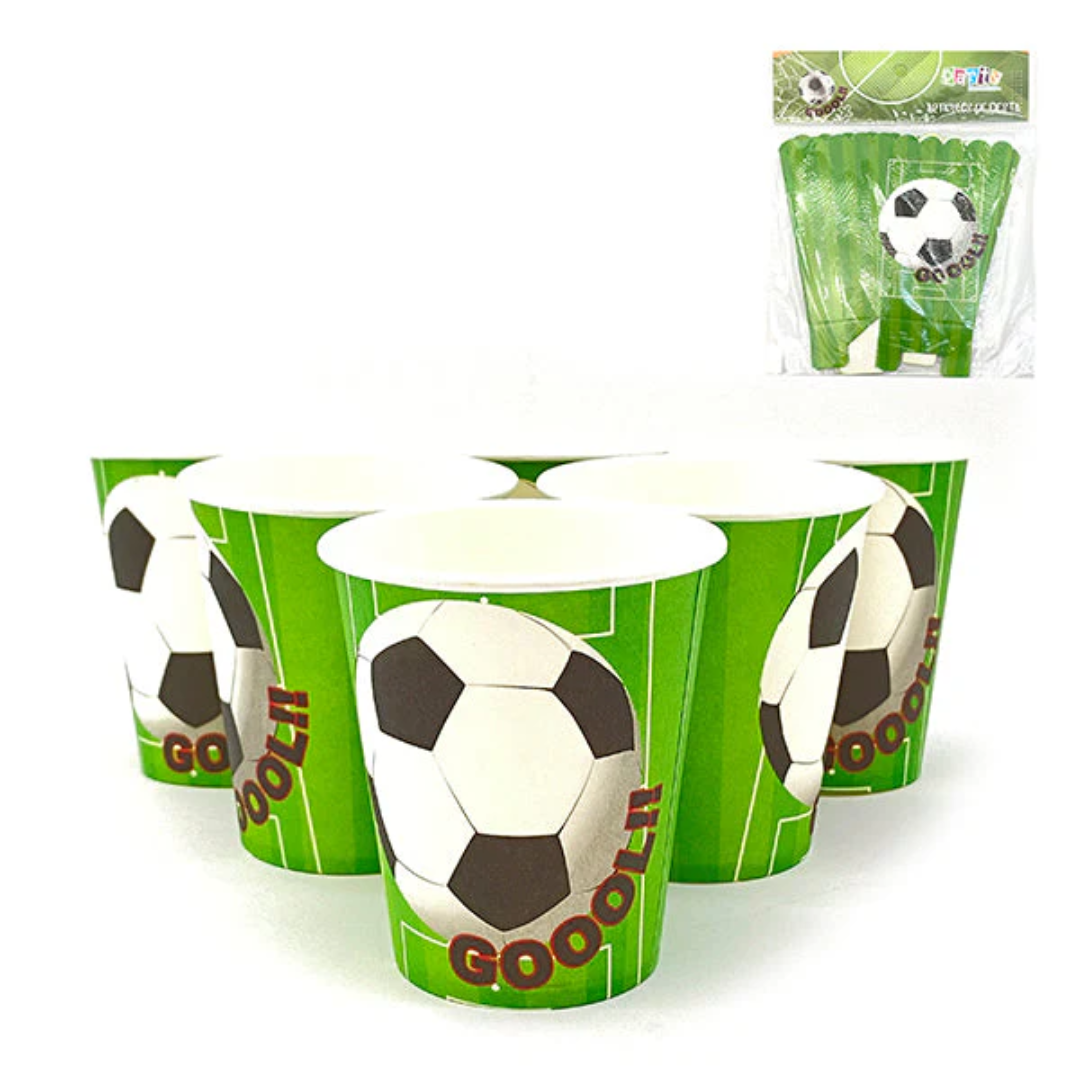 Vaso 9onzas con temática de fútbol, ideal para tus celebraciones, el empaque contiene 6 unidades
