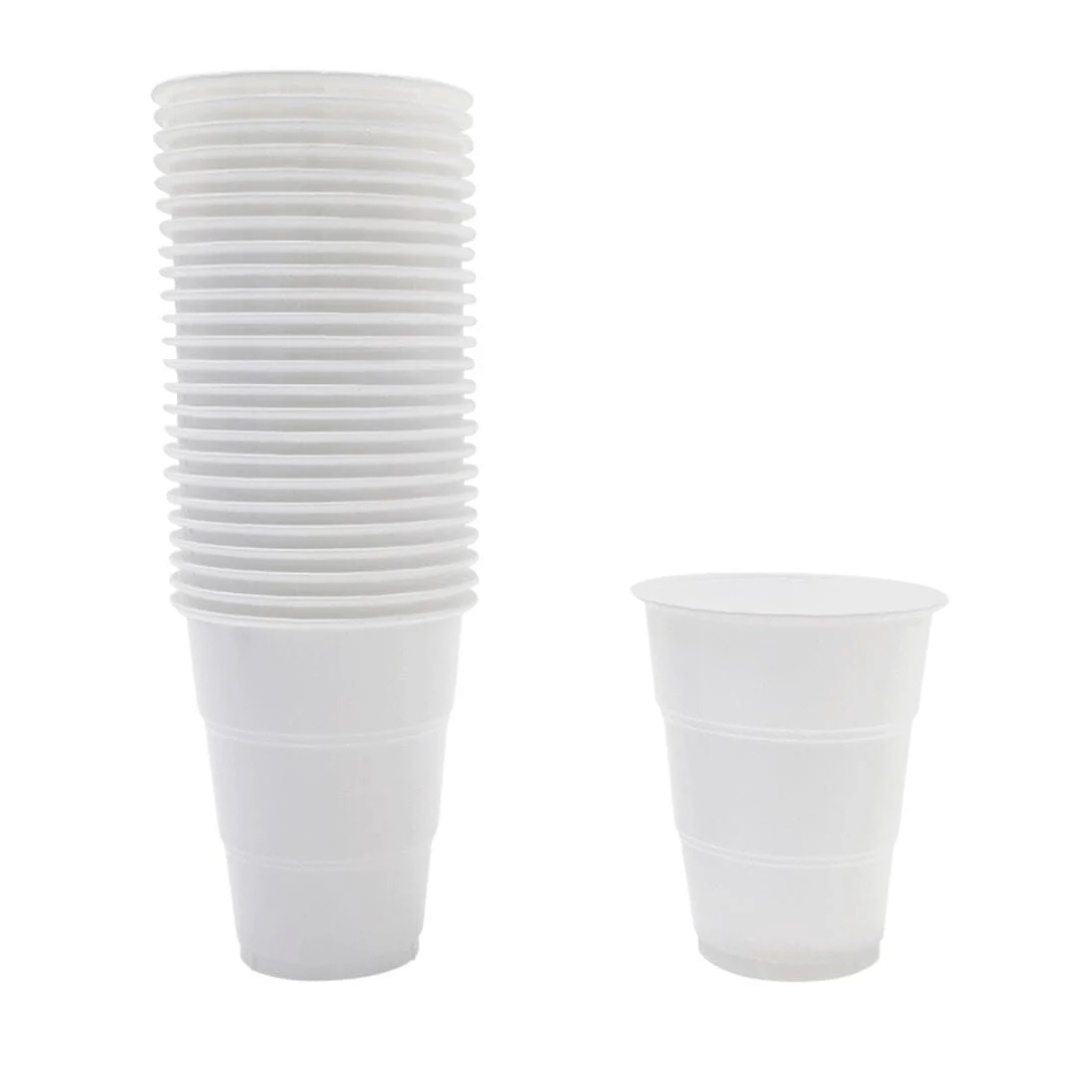 Vasos color blanco de 7 onzas, el empaque incluye 25 unidades