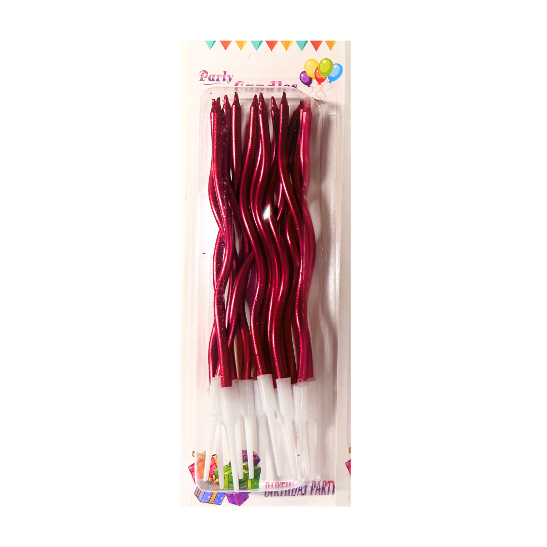 Velas cromadas color rojo, el empaque contiene 12 unidades con un tamaño aproximado de 15cm